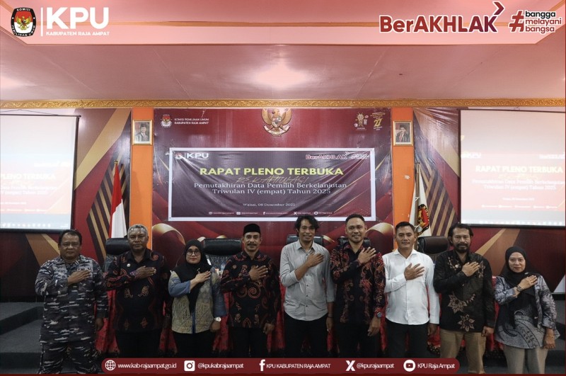 Komisi Pemilihan Umum Kabupaten Raja Ampat telah menetapkan Rekapitulasi Daftar Pemilih Berkelanjutan (PDPB) Triwulan IV Tahun 2025 melalui Rapat Pleno Terbuka pada Kamis, 8 Desember 2025.