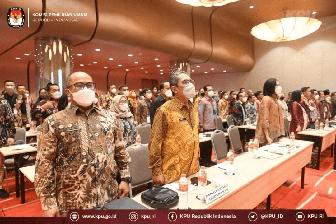 Turut hadir Deputi Bidang Administrasi Purwoto Ruslan Hidayat, Inspektur Utama Nanang Priyatna, Jajaran Eselon II Sekretariat Jenderal KPU, Ketua, Anggota, Kepala Bagian dan Kepala Sub Bagian serta Operator SIstem Informasi Partai Politik ( SIPOL) KPU Provinsi/KIP Aceh se-Indonesia (22/07).