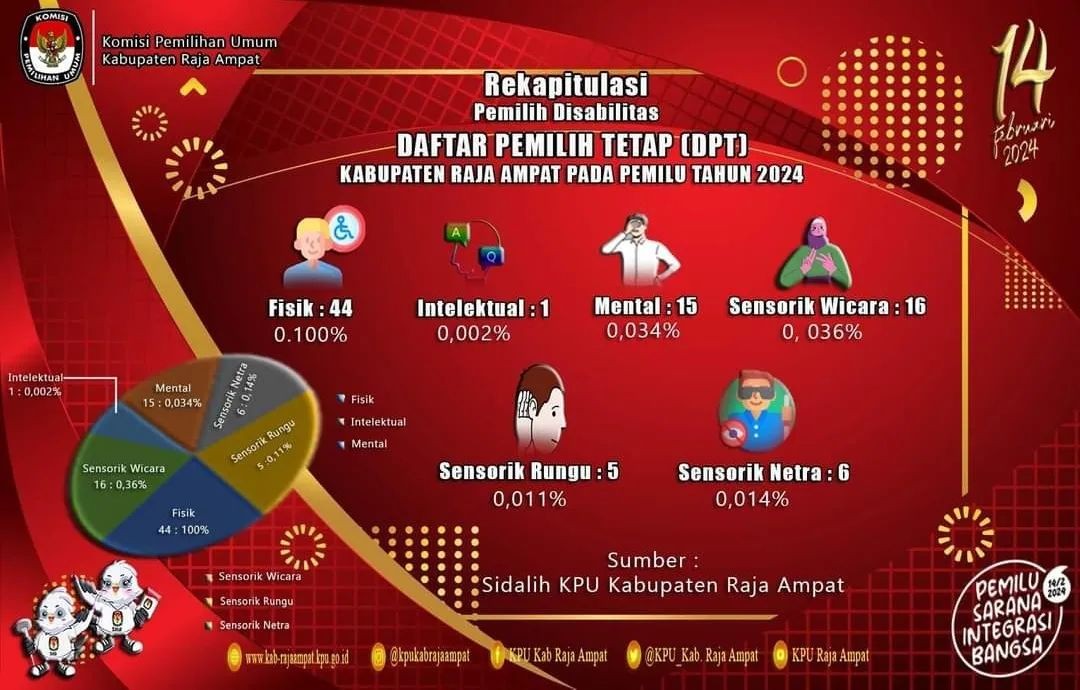 #TemanPemilih, Berikut Daftar Pemilih Tetap (DPT) Kabupaten Raja Ampat dalam Pemilihan Umum Tahun 2024 dan Rekapitulasi Pemilih Disabilitas Kabupaten Raja Ampat.