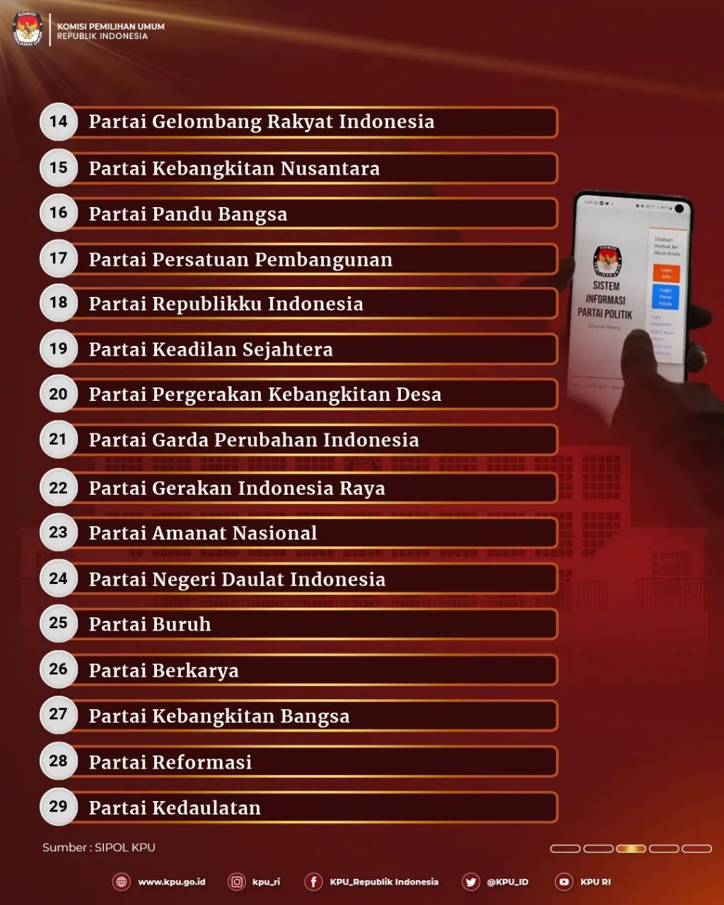 #TemanPemilih, inilah update sementara partai politik dan partai politik lokal Aceh yang sudah memiliki akun Sistem Informasi Politik (SIPOL) Pemilu Tahun 2024.