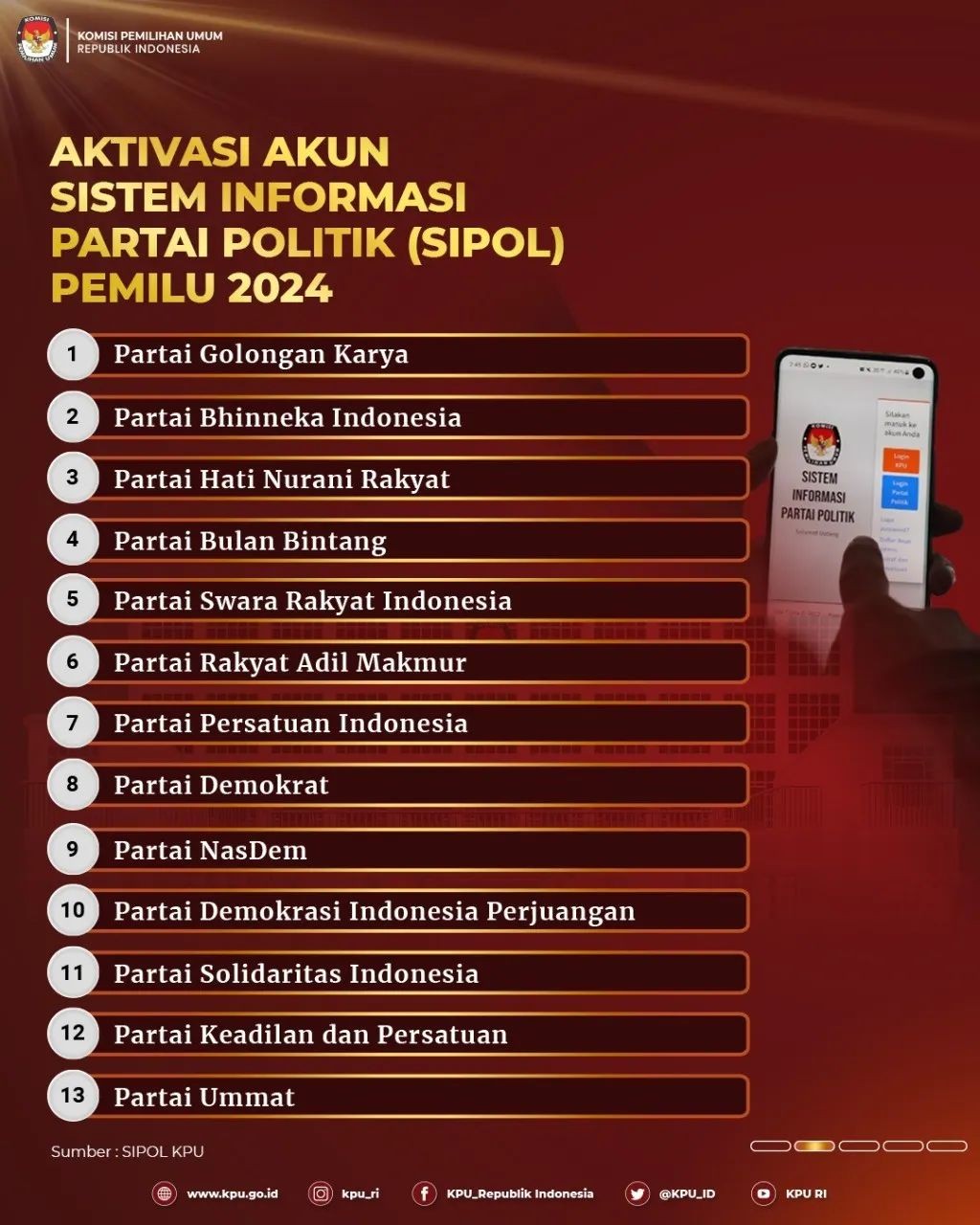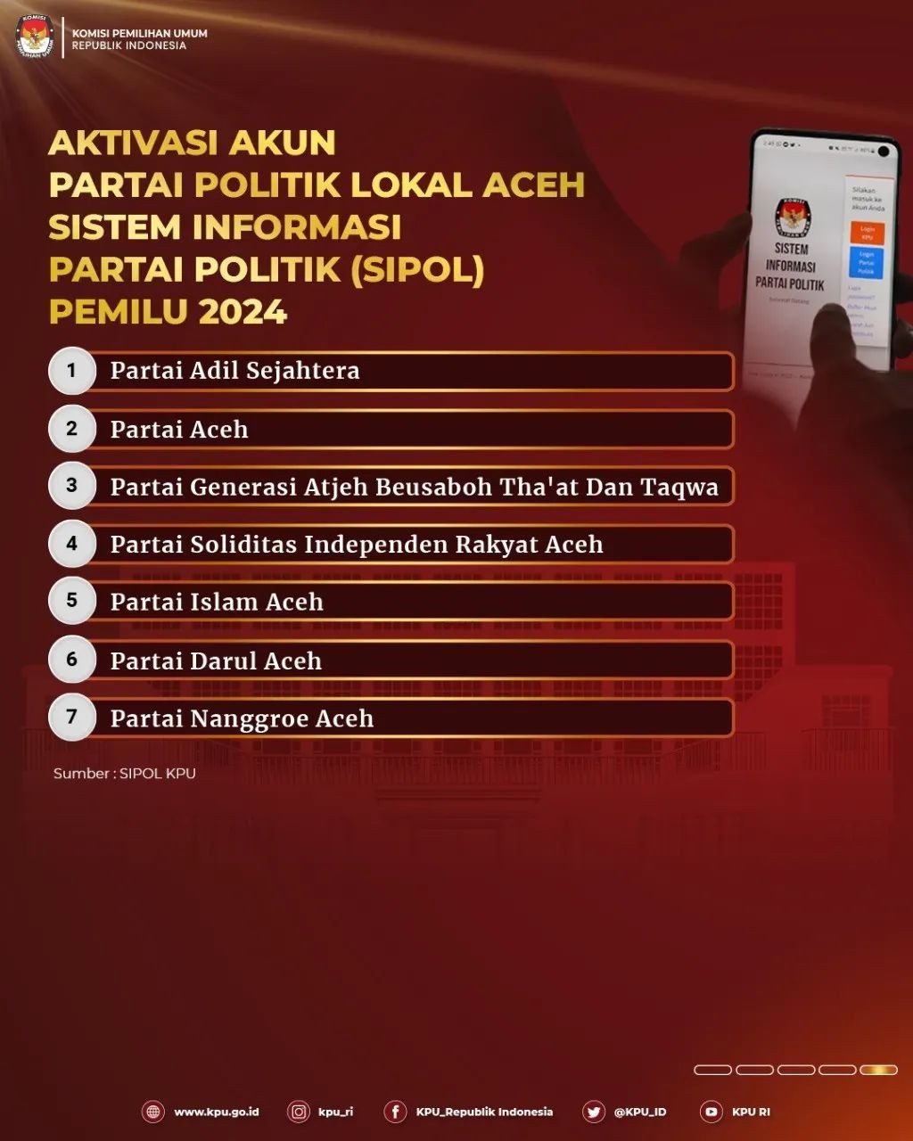 #TemanPemilih, inilah update sementara partai politik dan partai politik lokal Aceh yang sudah memiliki akun Sistem Informasi Politik (SIPOL) Pemilu Tahun 2024.
