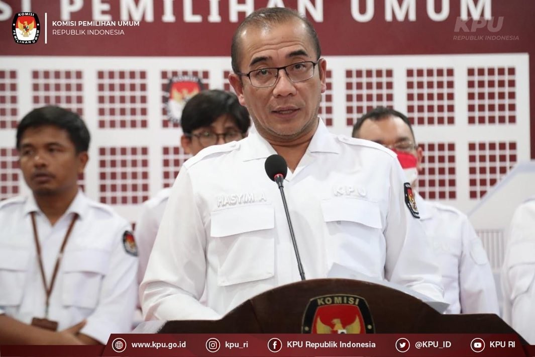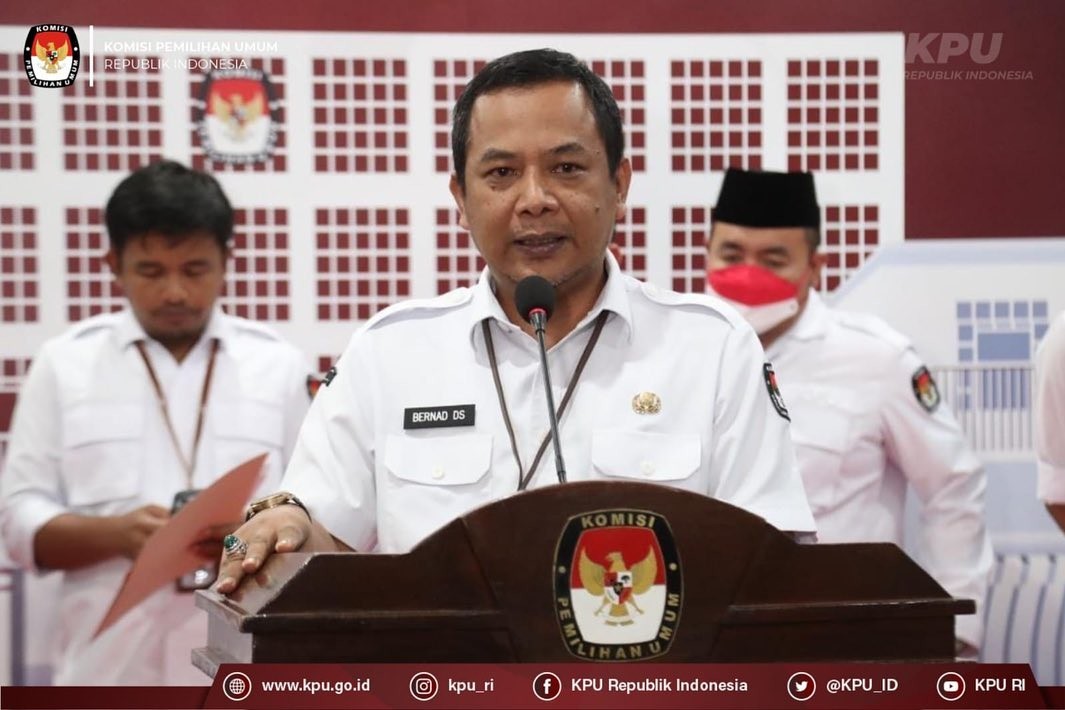 #TemanPemilih, Ketua KPU Hasyim Asy’ari, Anggota KPU Idham Holik, August Mellaz, Yulianto Sudrajat, Mochammad Afifuddin, dan Parsadaan Harahap serta Sekretaris Jenderal KPU Bernad Dermawan Sutrisno hadir pada konferensi pers penyampaian perkembangan proses pendaftaran partai politik calon peserta Pemilu 2024, hari kedelapan, Senin (8/8/2022).