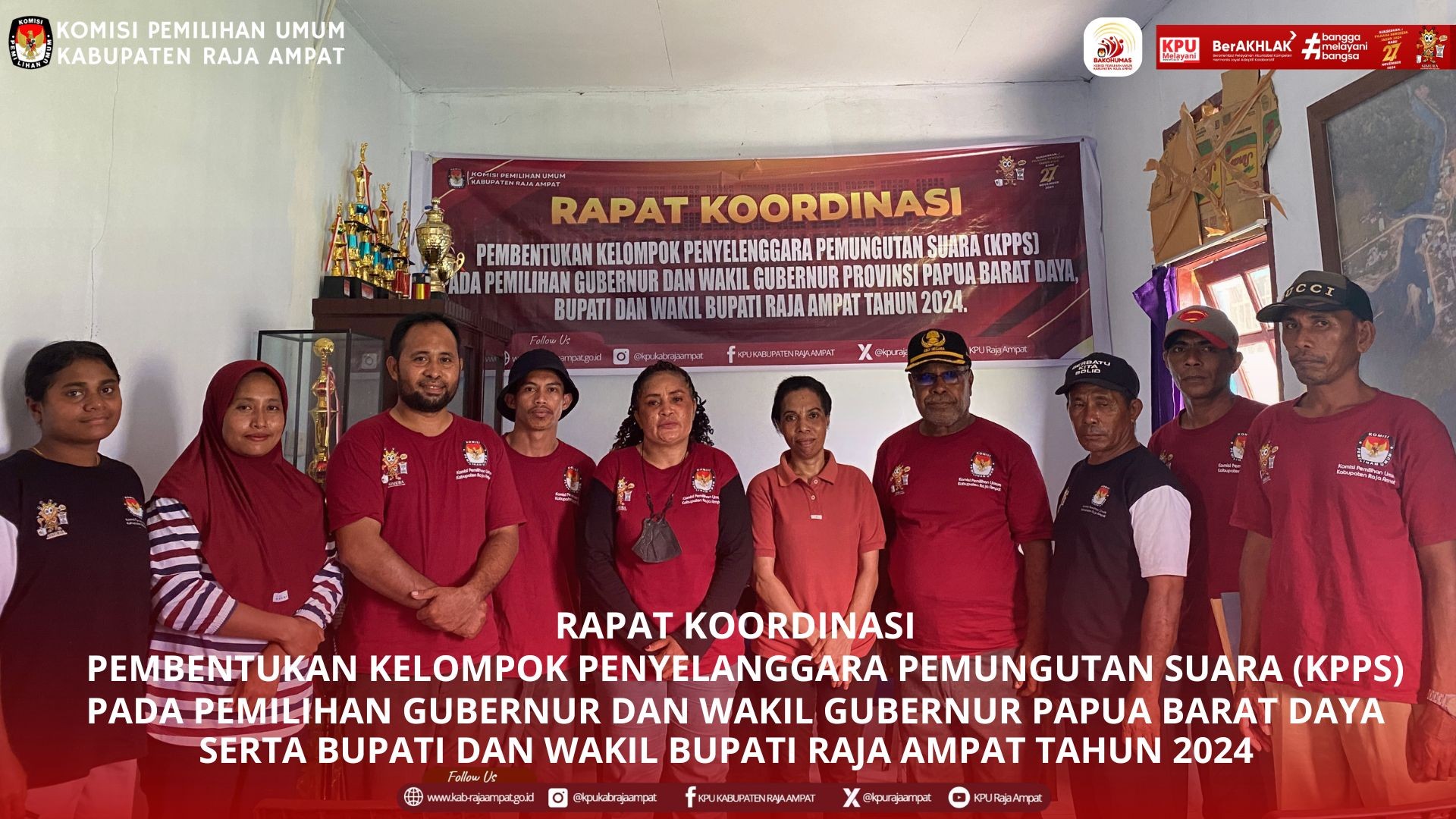Ketua KPU Raja Ampat, Arsad Sehwaky menyampaikan bahwa rapat koordinasi pembentukan kelompok penyelamggara pemungutan suara (KPPS) pada pemilihan Gubernur dan Wakil Gubernur Papua Barat Daya serta Bupati dan Wakil Bupati Raja Ampat tahun 2024 yang di lakukan bersama PPD serta PPD masing-masing Distrik untuk memastikan perekrutan KPPS berjalan sesuai mekanisme.