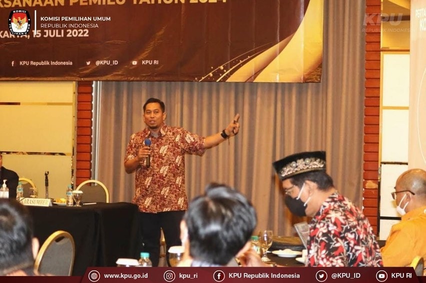 Partisipasi dan Hubungan Masyarakat Setjen KPU RI Cahyo Ariawan membuka Rapat Focus Group Discussion (FGD) Pemetaan Peran Media dalam Rangka Mendukung Pelaksanaan Pemilu Tahun 2024, di Jakarta, Jumat (15/07).