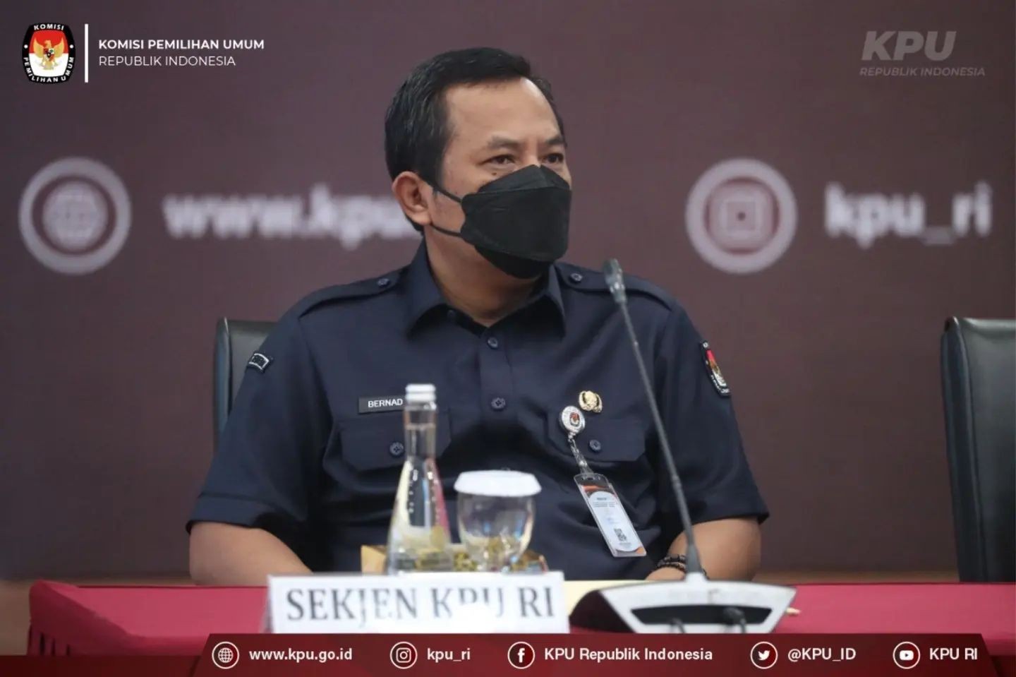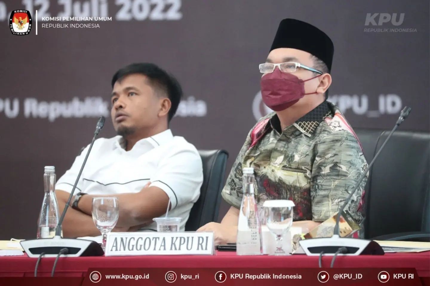 #TemanPemilih Ketua KPU RI Hasyim Asy'ari, Anggota KPU RI Betty Epsilon Idroos, Yulianto Sudrajat, Idham Holik, August Mellaz, Parsadaan Harahap, bersama Sekretaris Jenderal KPU RI Bernad Dermawan Sutrisno membuka acara Rekapitulasi Pemutakhiran Data Pemilih Berkelanjutan (PDPB) Semester I Tahun 2022 Tingkat Nasional yang digelar di Kantor KPU RI, Selasa (12/07).