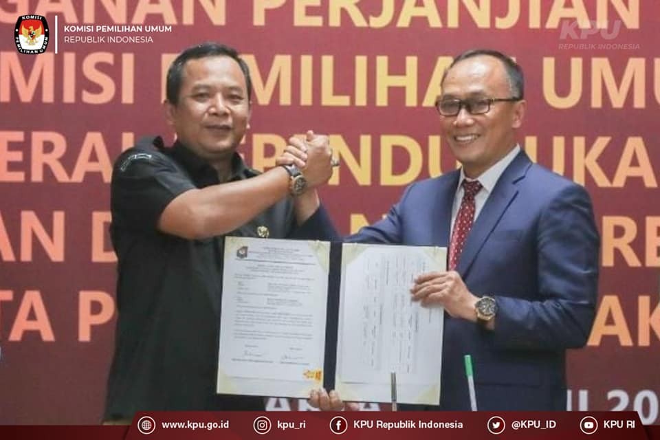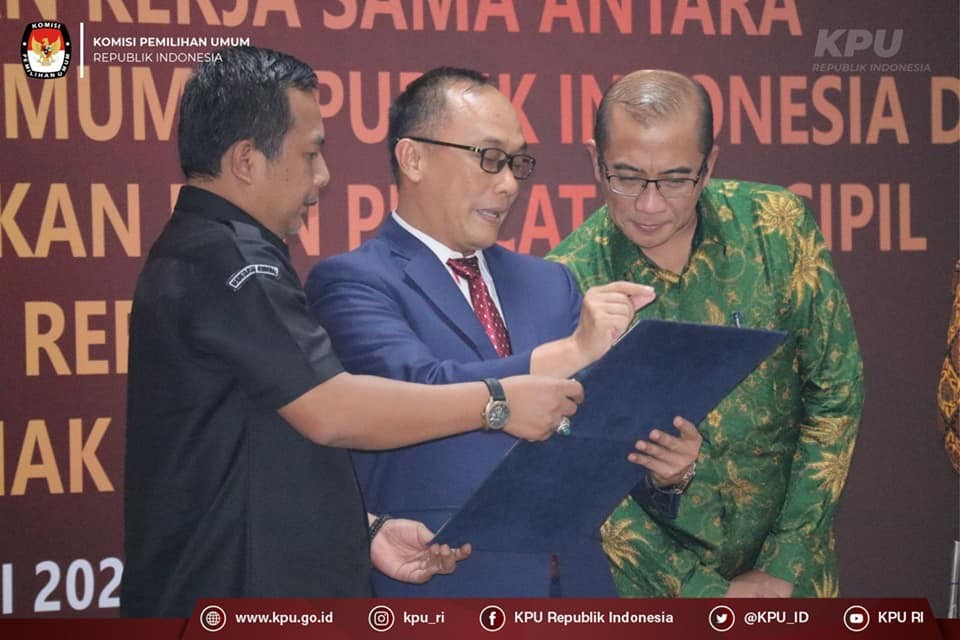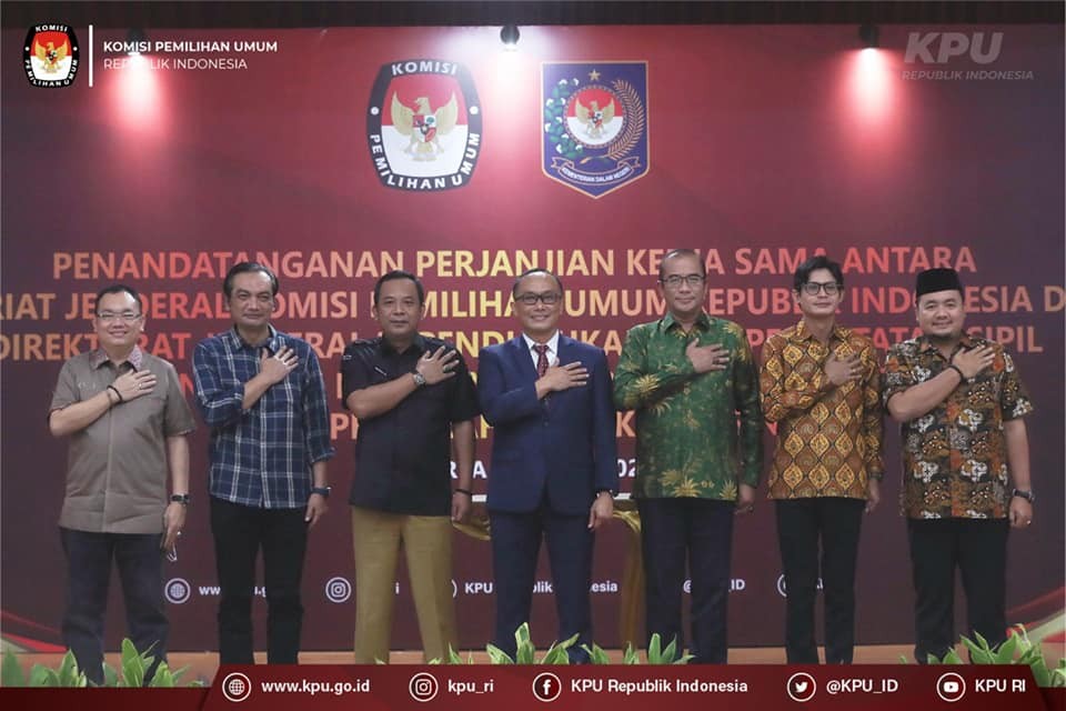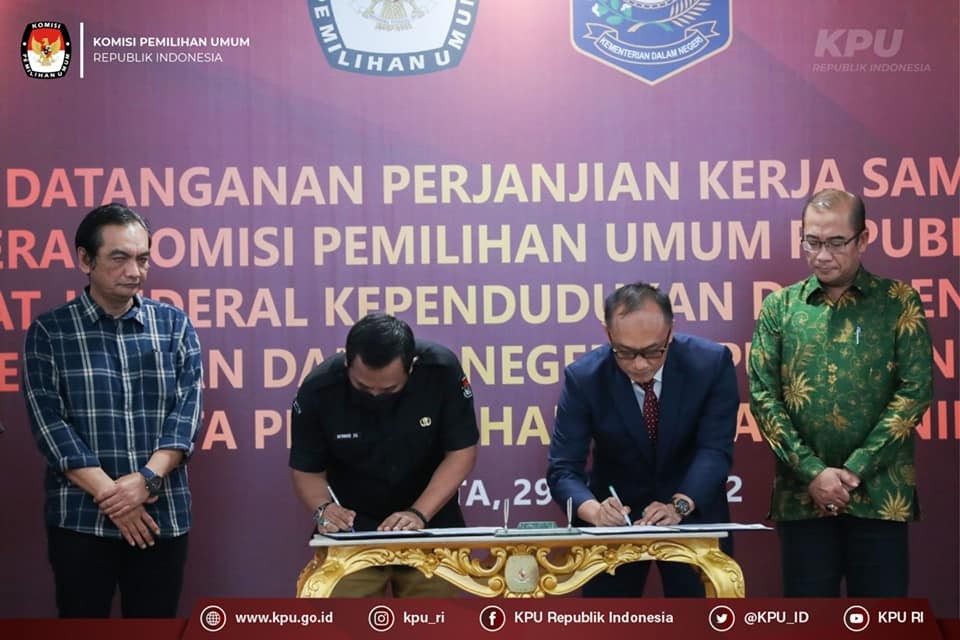 Penandatanganan dilakukan Sekretaris Jenderal KPU RI Bernad Dermawan Sutrisno bersama Direktur Jenderal Dukcapil Kemendagri Zudan Arif Fakhrulloh, serta disaksikan oleh Ketua KPU RI Hasyim Asy'ari, Anggota KPU RI August Mellaz, Parsadaan Harahap, Mochammad Afifuddin, dan Yulianto Sudrajat.