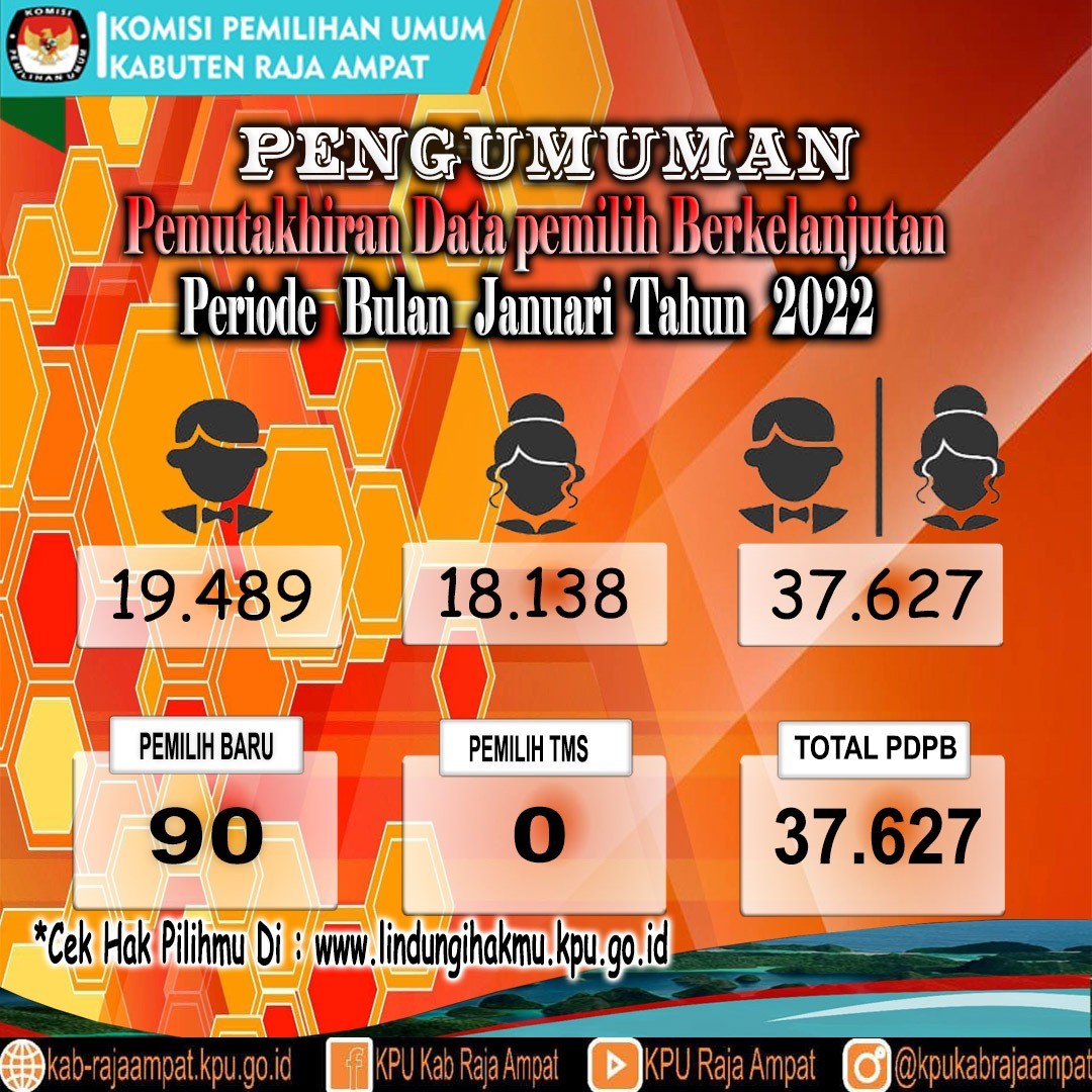 #TemanPemilih, Pemberitahuan Bagi Warga Kabupaten Raja Ampat, Rapat Pleno Rekapitulasi Pemutakhiran Data Pemilih Berkelanjutan ( PDPB ) KPU Kabupaten Raja Ampat Periode Bulan Januari Tahun 2022.