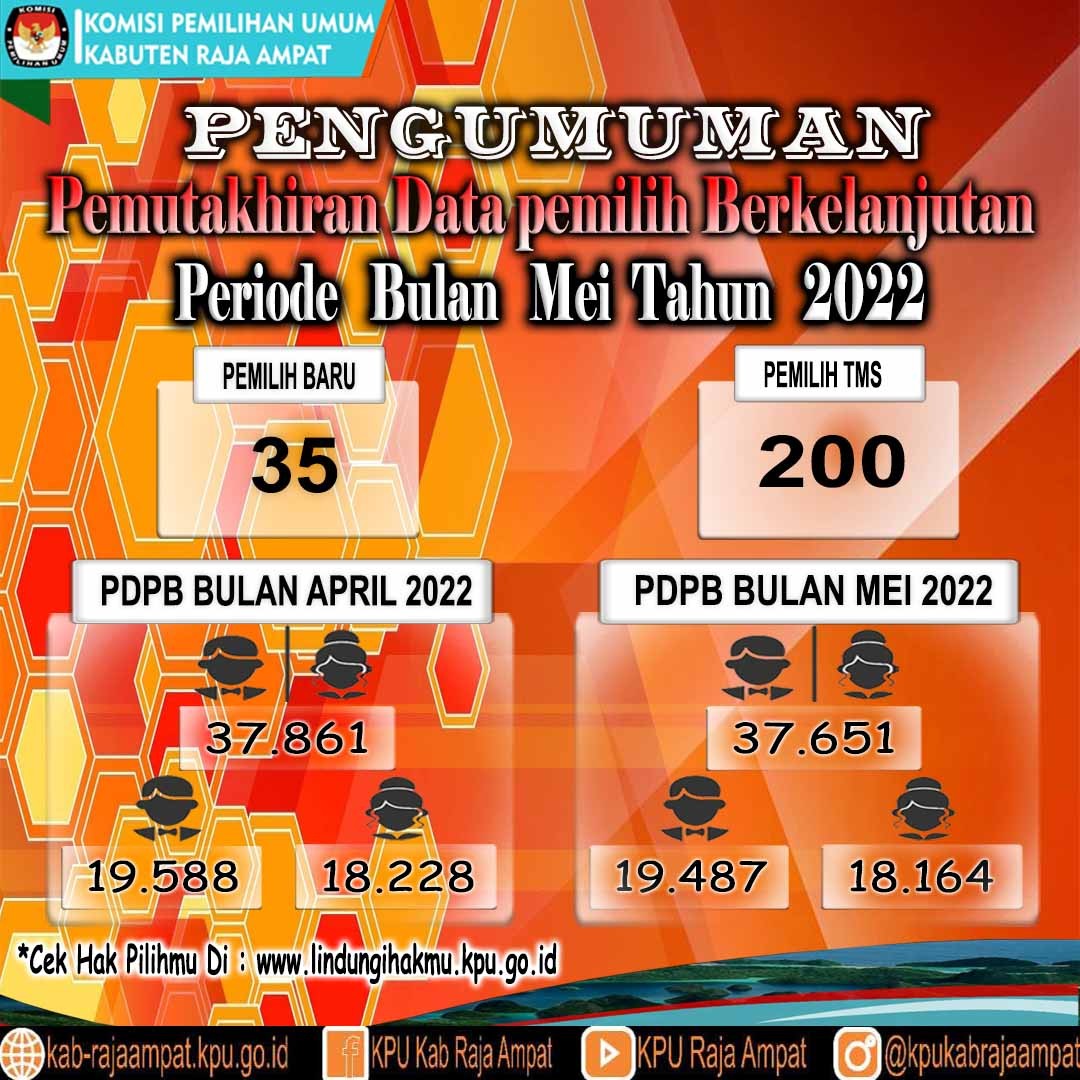 Pengumuman Pemutakhiran Data Pemilih Berkelanjutan (PDPB) Periode Mei 2022