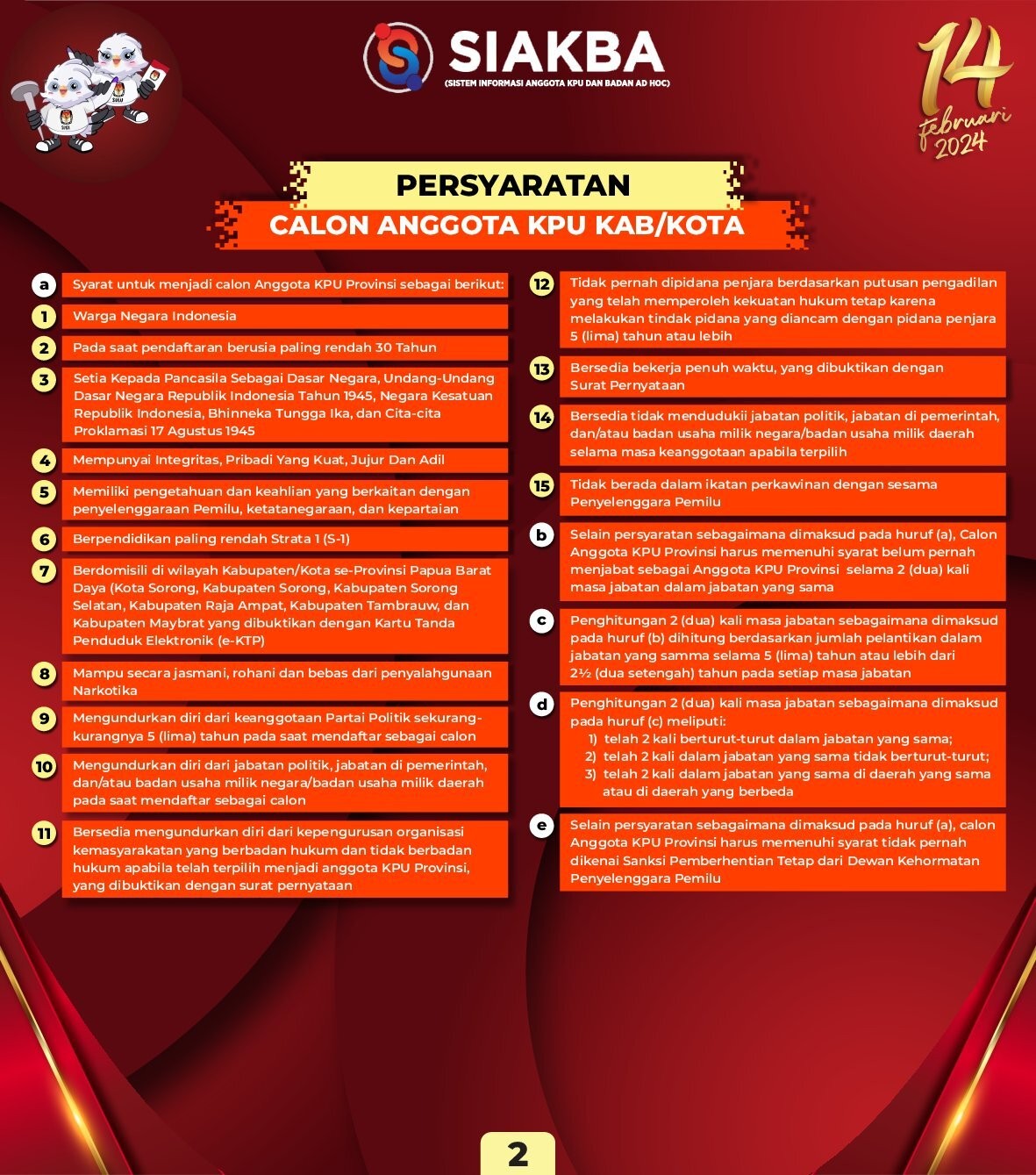 PENGUMUMAN PENDAFTARAN BAKAL CALON ANGGOTA KPU KABUPATEN/KOTA PADA PROVINSI PAPUA BARAT DAYA PERIODE 2023 - 2028