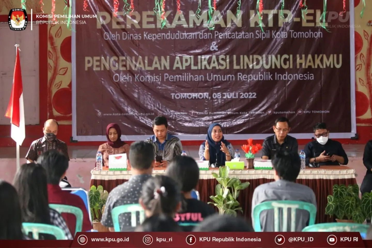 #TemanPemilih Anggota KPU RI Betty Epsilon Idroos menghadiri Perekaman KTP-el oleh Dinas Kependudukan dan Pencatatan Sipil Kota Tomohon dan Pengenalan Aplikasi Lindungi Hakmu oleh KPU RI yang digelar KPU Kota Tomohon, Provinsi Sulawesi Utara kerja sama dengan Pemerintah Kota Tomohon, di Tomohon.