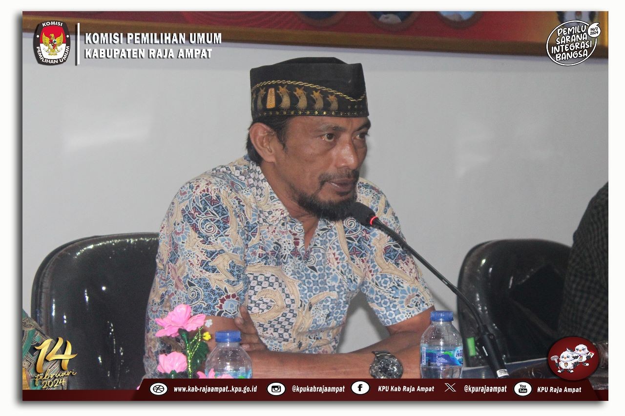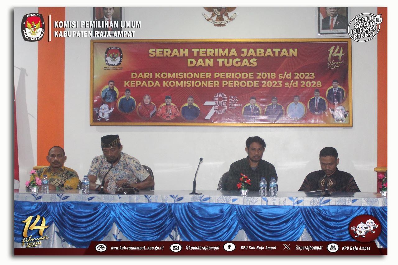 Acara Serah terima dipimpin langsung oleh Plh Sekretaris yang di dampingi oleh Anggota KPU yang baru dilantik dalam hal ini Ketua KPU Raja Ampat, Devisi Teknis penyelenggara, Devisi Sosdiklih Parmas dan SDM serta mantan anggota KPU Raja Ampat Periode 2018 s/d 2023 Muslim Saifuddin.