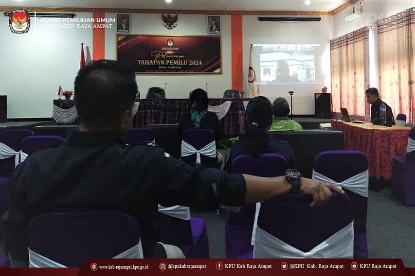 Hadir mengikuti Sosialisasi, Ketua KPU Kabupaten Raja Ampat Steven Eibe, Anggota KPU Divisi Perencaan, Data dan Informasi Laily Ligawa, Kasubbag Data dan Informasi Mersilisa Hiborang serta Staf Sub Bagian Data dan Informasi.