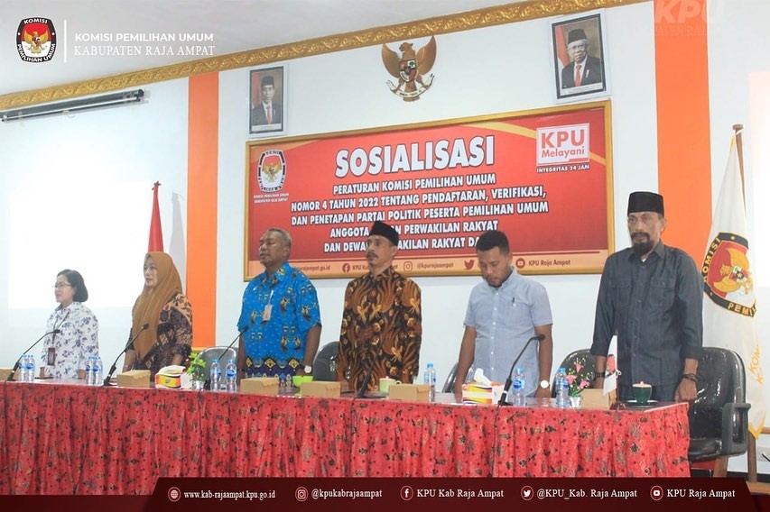 #TemanPemilih, Komisi Pemilihan Umum (KPU) Kabupaten Raja Ampat melakukan sosialisasi Peraturan KPU Nomor 4 Tahun 2022 tentang pendaftaran, verifikasi dan penetapan partai politik peserta Pemilihan Umum anggota DPR dan DPRD.