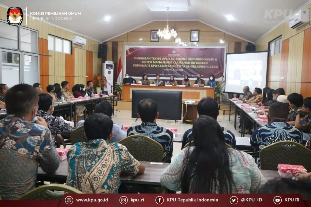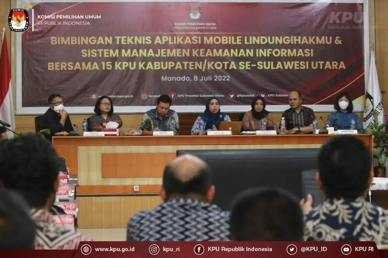 #TemanPemilih Anggota KPU RI Betty Epsilon Idroos membuka kegiatan Bimbingan Teknis Aplikasi Mobile LindungiHakmu & Sistem Manajemen Keamanan Informasi bersama 15 KPU Kabupaten/Kota se-Sulawesi Utara (Sulut) yang digelar KPU Provinsi Sulut.