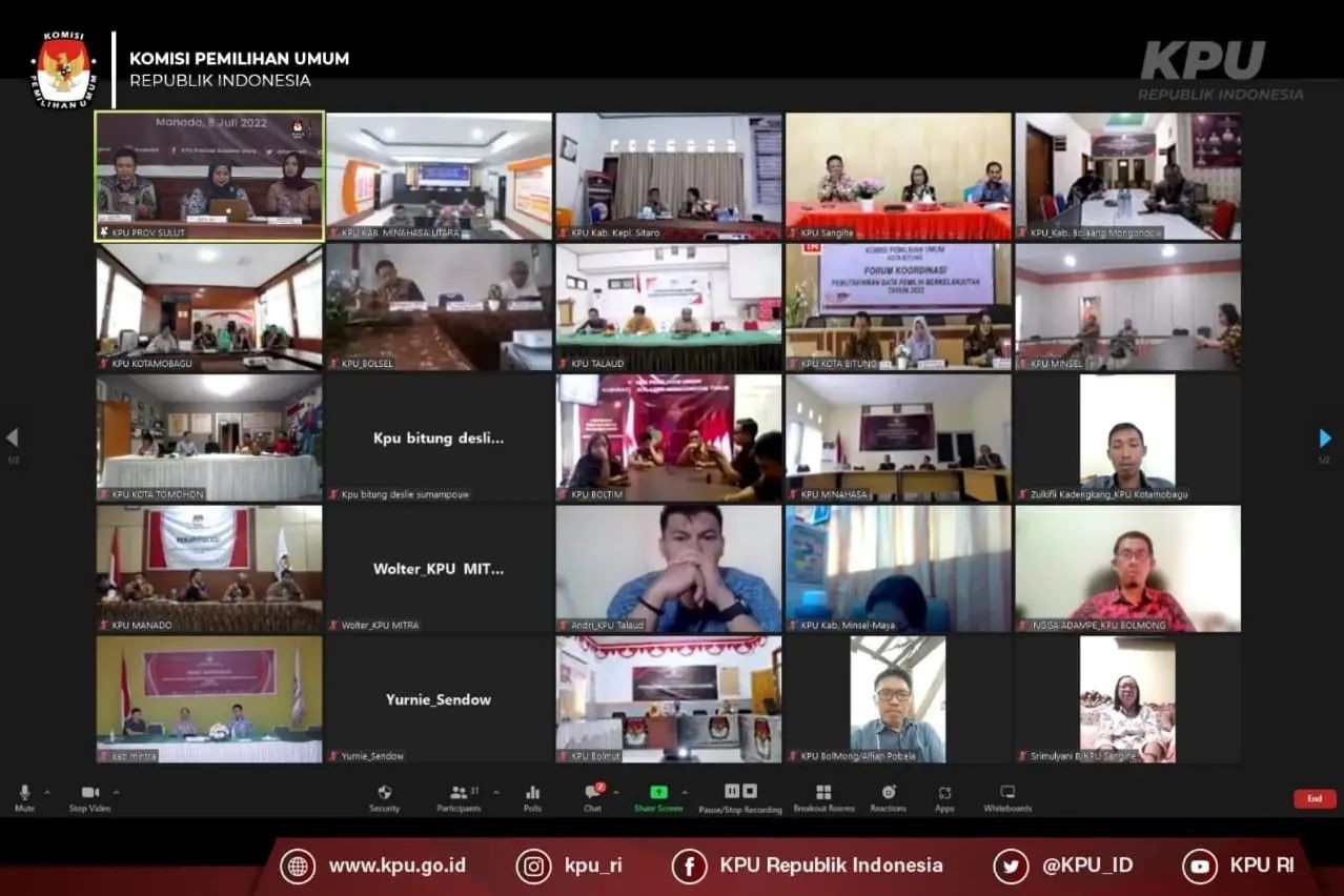 Turut hadir Ketua, Anggota dan Sekretaris KPU Provinsi Sulut dan KPU Kab/Kota se-Sulut secara luring dan daring (8/07).