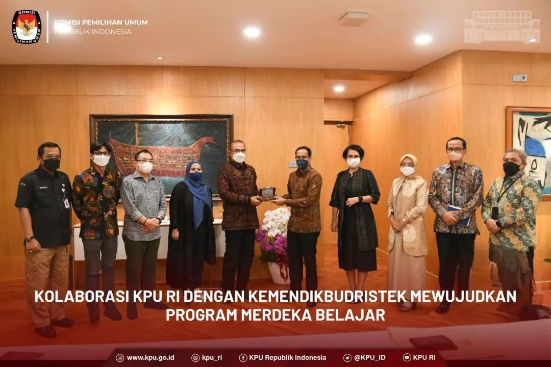 #TemanPemilih Ketua KPU RI Hasyim Asy'ari, Anggota KPU RI Betty Epsilon Idroos, Parsadaan Harahap, August Mellaz, bersama Sekretaris Jenderal KPU RI Bernad Dermawan Sutrisno, didampingi Kepala Biro Partisipasi dan Masyarakat Setjen KPU RI Cahyo Ariawan beraudiensi dengan Menteri Pendidikan, Kebudayaan, Riset dan Teknologi Nadiem Makarim di Kantor Kemendikbudristek, Rabu (13/07).