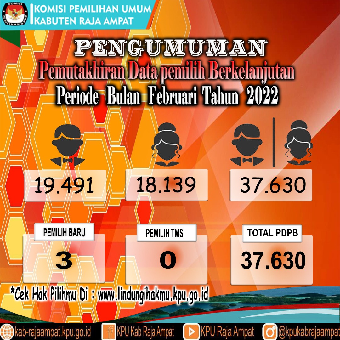 #TemanPemilih, Pemberitahuan Bagi Warga Kabupaten Raja Ampat, Rapat Pleno Rekapitulasi Pemutakhiran Data Pemilih Berkelanjutan ( PDPB ) KPU Kabupaten Raja Ampat Periode Bulan Februari Tahun 2022.
