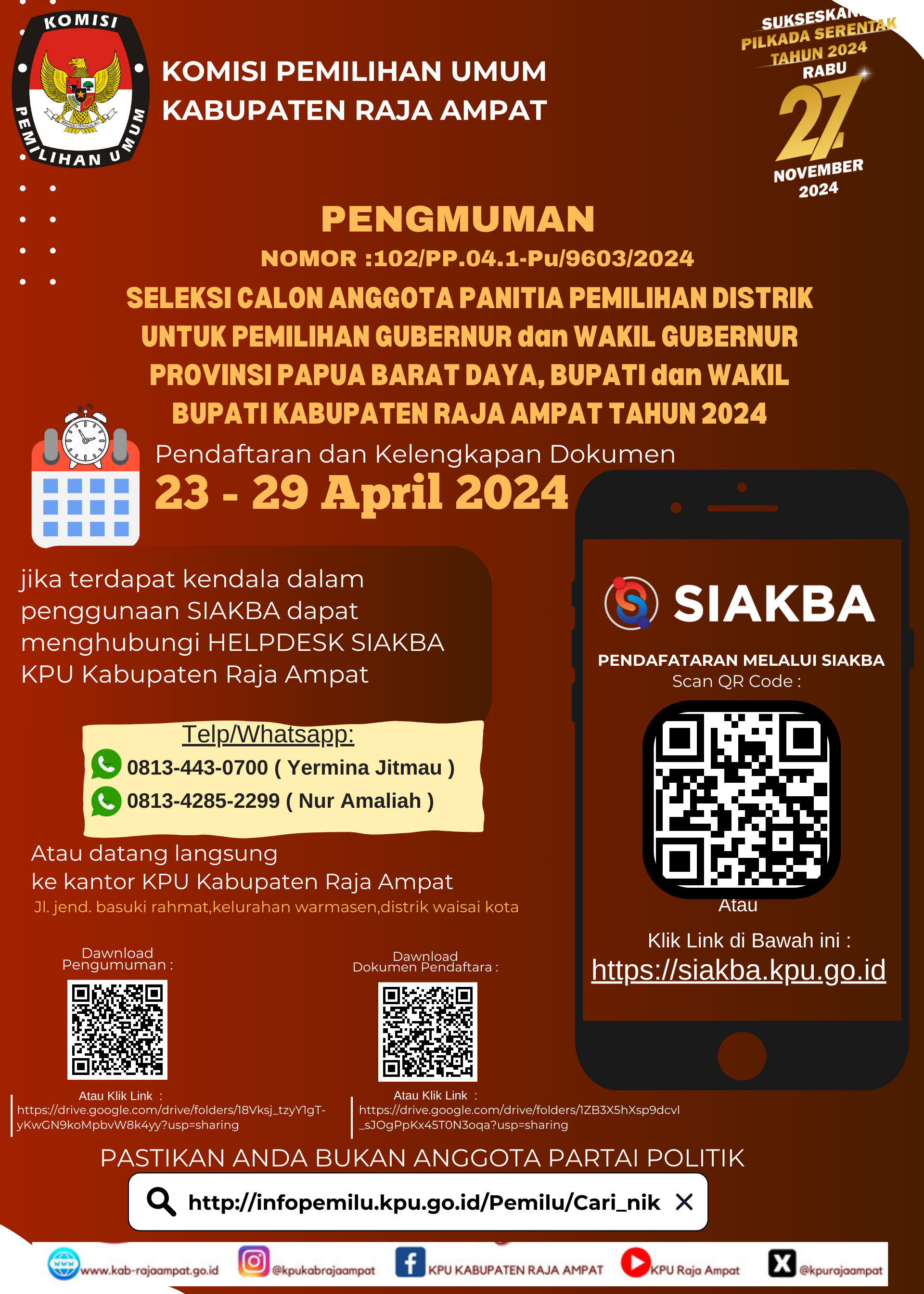 atau Datang ke Kantor KPU Kab. Raja Ampat