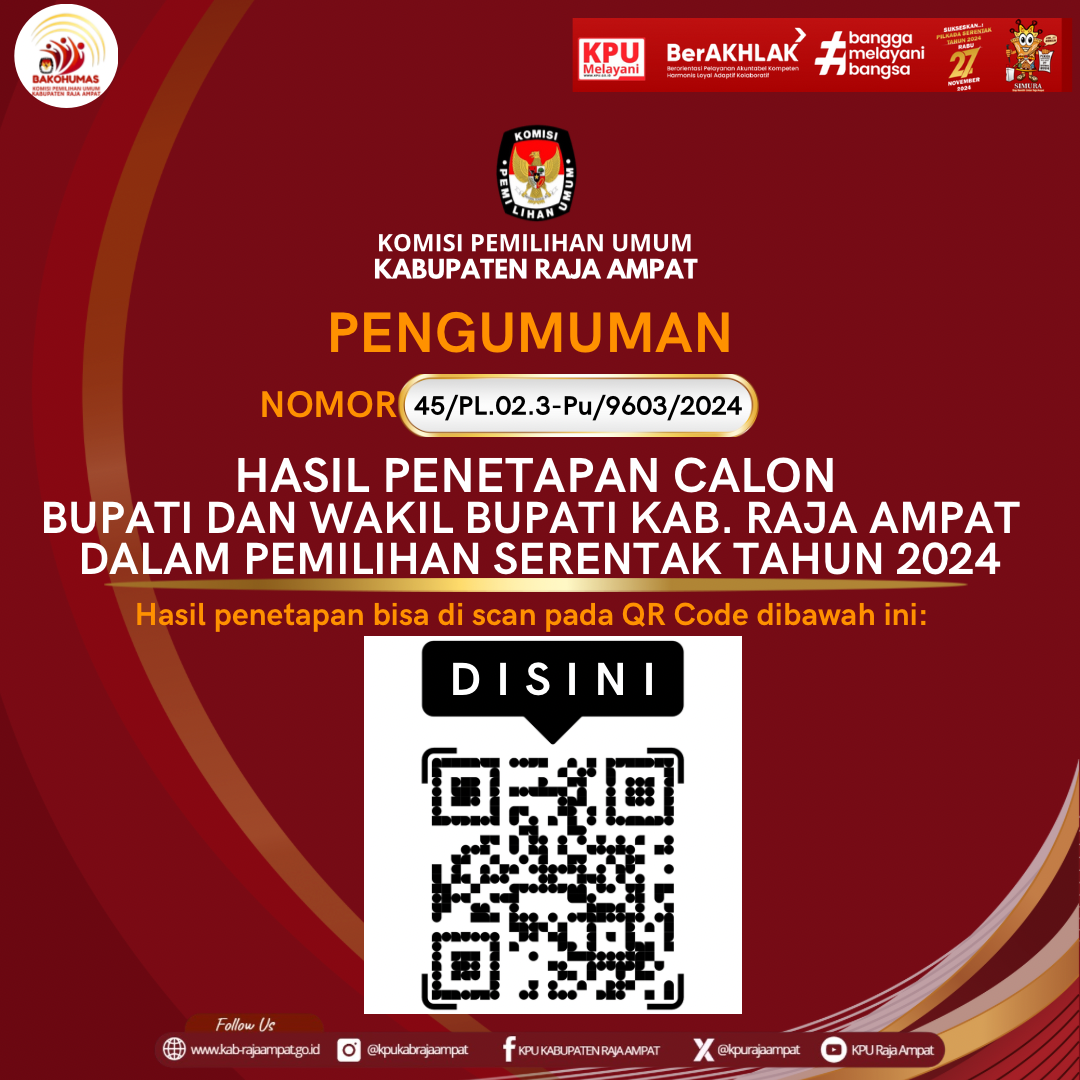 #Temanpemilih, Berikut Kami Umumkan Hasil Penetapan Calon Bupati dan Wakil Bupati Kabupaten Raja Ampat Dalam Pemilihan Serentak Tahun 2024