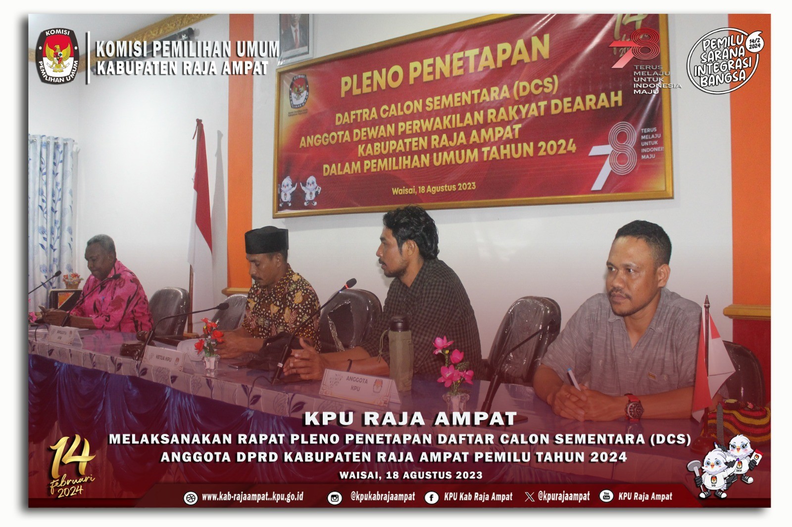 #TemanPemilih, KPU Raja Ampat melaksanakan Rapat Pleno Penetapan Daftar Calon Sementara (DCS) Angota DPRD Kabupaten Raja Ampat Pemilu Tahun 2024 secara tertutup, ( Jumat, 18/8/23 ).