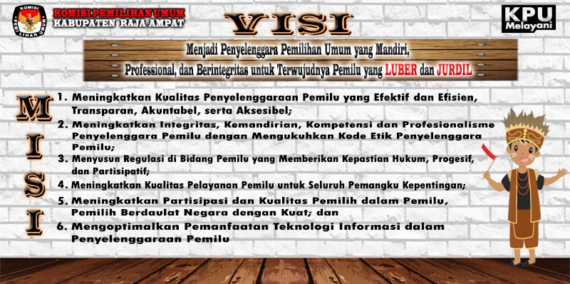 "Menjadi Penyelenggara Pemilihan Umum yang Mandiri, Professional, dan Berintegritas untuk Terwujudnya Pemilu yang LUBER dan JURDIL"